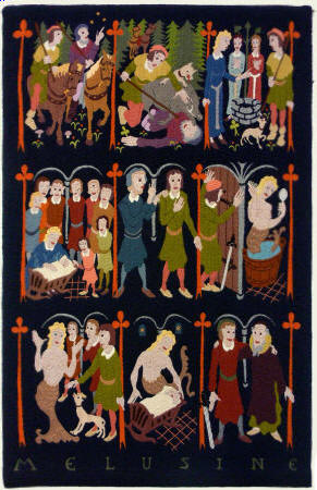 Hier wird das selbe Thema in unterschiedlich vielen Einzelbildern dargestellt. Der linke Teppich von Frau Hirschler zeigt das Märchen in 9, der rechte Teppich von Frau Fischer (Mariensee) in 21 Bildern. Beide Entwürfe sind - in dieser Form - von Erich Klahn; der linke stellt eine Kurzfassung dar. |